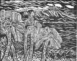 木版画が趣味で、かつハワイ大好きな私がたどり着いたところ・・・「ハワイの風物を彫る」ということです。勝手に「ハワイアン木版画(